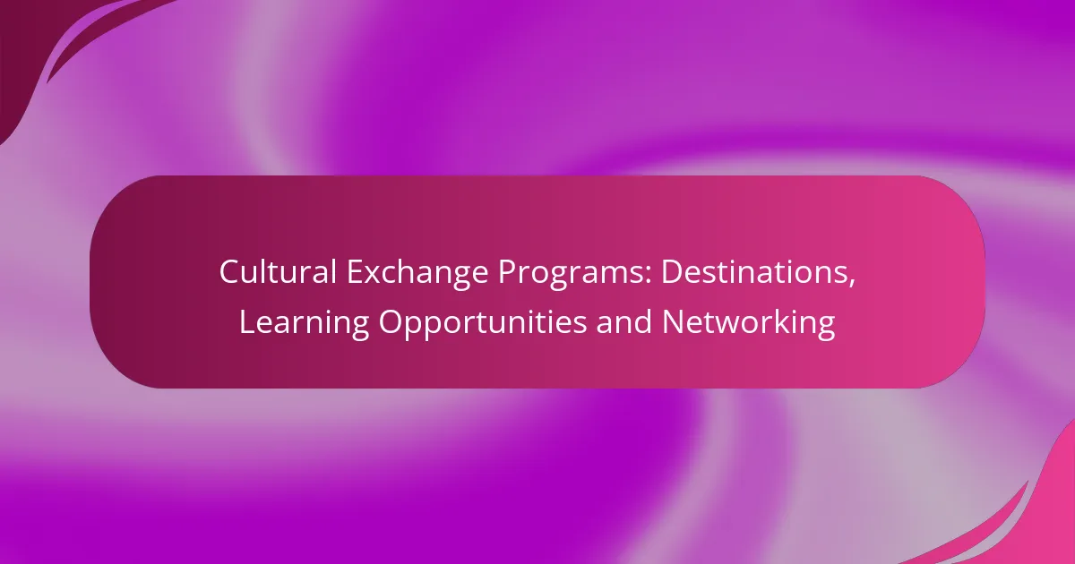 Cultural exchange programs offer enriching experiences that promote personal growth and cultural understanding through immersive learning opportunities. Destinations such as New York, San Francisco, and Chicago provide participants with the chance to enhance their language skills and professional networks while engaging with diverse communities. These programs not only foster valuable connections with local professionals but also open doors to future career opportunities.