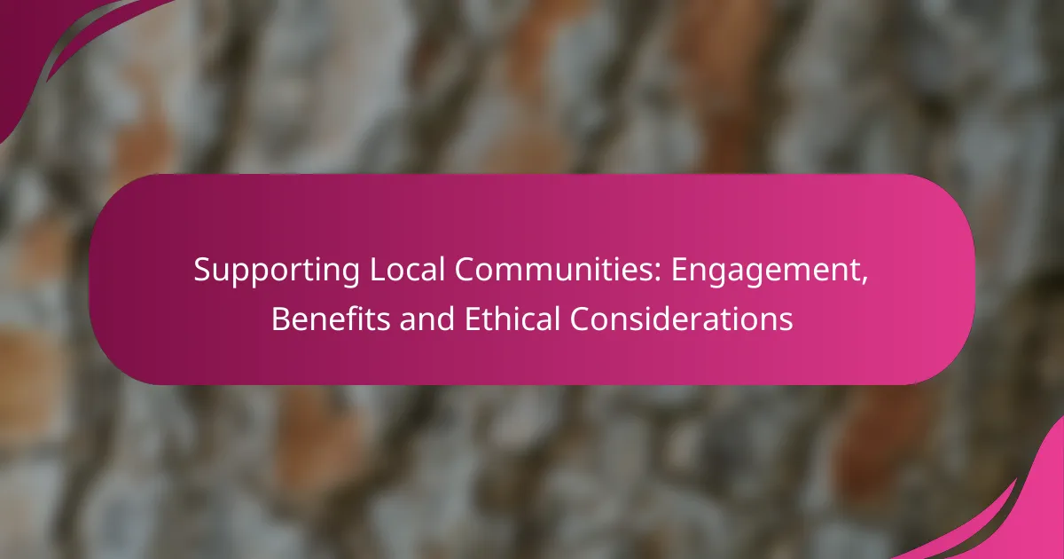 Supporting local communities is essential for fostering collaboration and enhancing social ties, ultimately leading to a stronger sense of belonging among residents. By engaging with and investing in local initiatives, individuals and businesses can contribute to economic stability and environmental sustainability. However, it is important to navigate the ethical considerations involved, ensuring fairness, inclusivity, and transparency in all efforts.